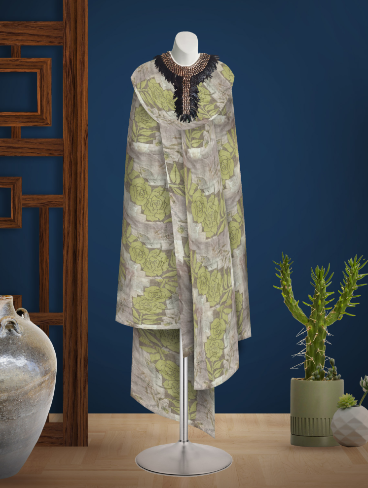 Motif ini merupakan pertemuan antara alam dan kearifan lokal. Memadukan keindahan Bunga mawar dalam teknik Karawo dengan keanggunan daun Akasia, Anggur, Acalypha dan Bunga Kosmos pada Kain Sutra yang lembut menciptakan narasi visual tentang kelembutan dan kekuatan yang melingkupi keindahan alam. Melalui harmoni warna dan bentuk, motif ini menggambarkan keseimbangan yang terpancar dari keberagaman alam semesta, mengundang pengamat untuk merenung tentang keajaiban dan kekuatan yang ada di sekitar kita.