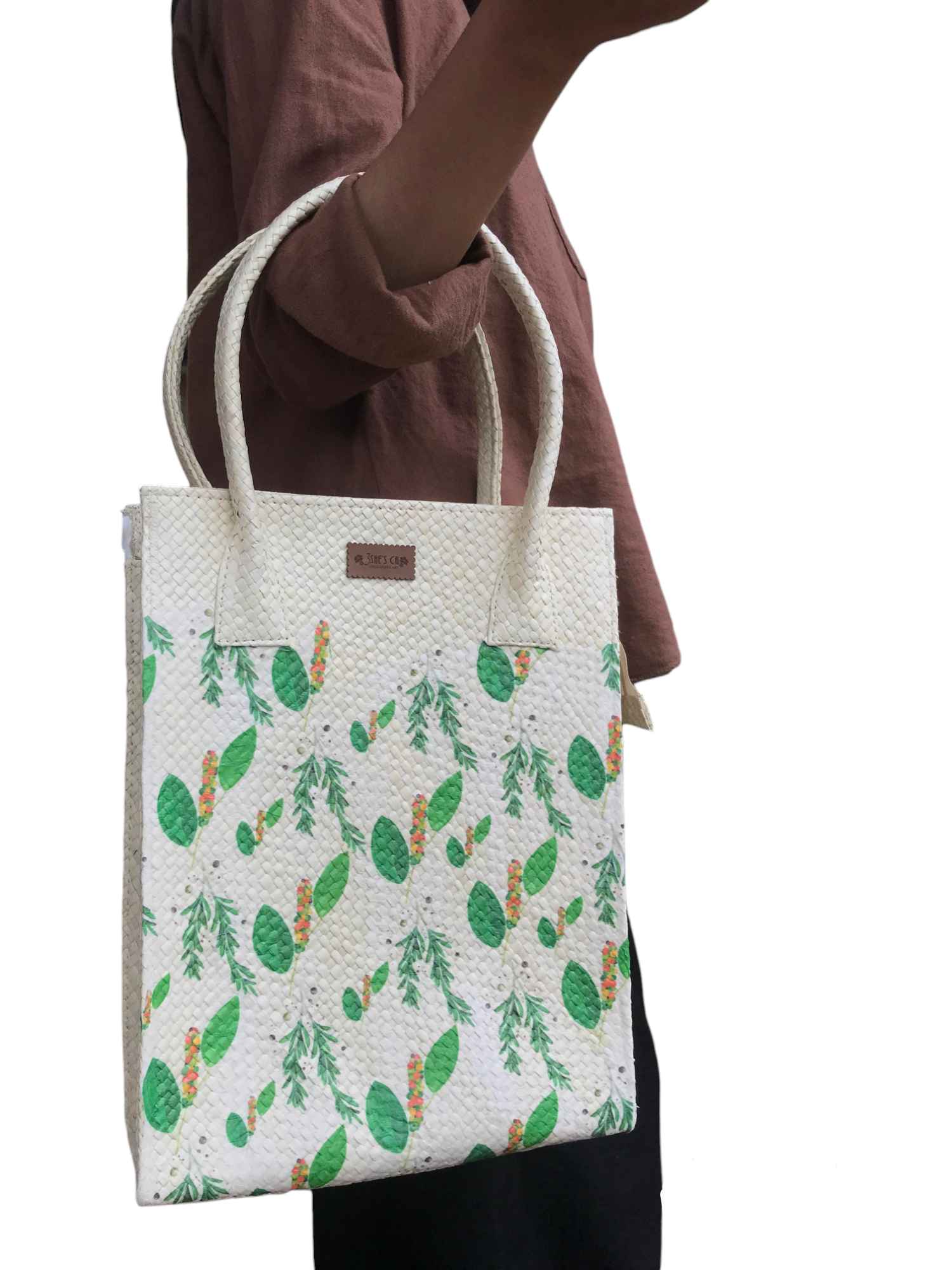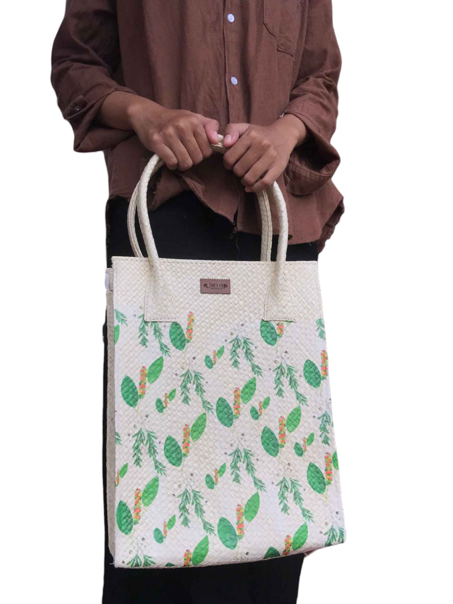 This bag is the result of a decoupage creation with a unique motif that comes from patterned tissue on woven pandanus media. Our innovation in this bag is to use tissue with local wisdom motifs typical of Bangka Belitung Lada Variasi. This bag has a high size with a zipper. Stock is available and can be ordered in large quantities with a PO system. And also can be costum for the motif.