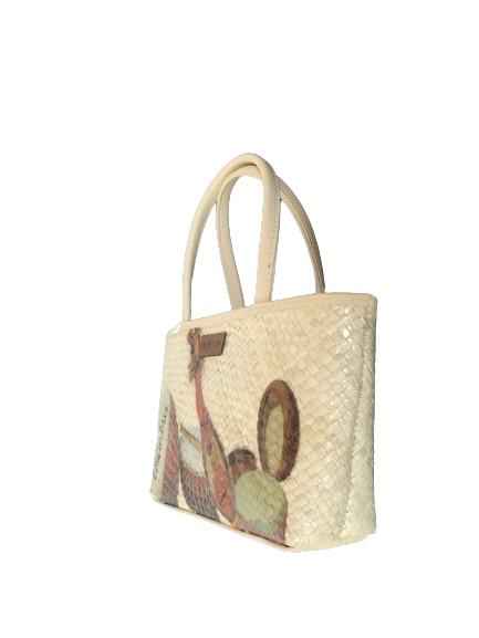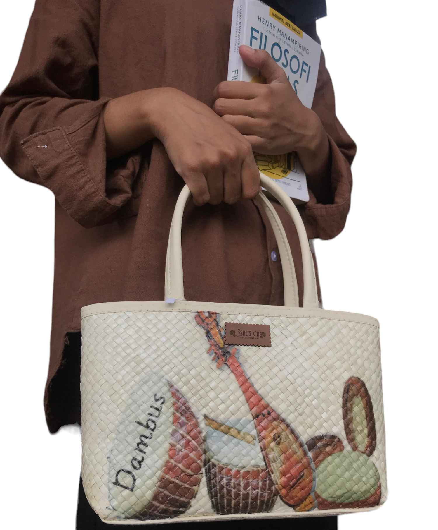 Pouch Kotak Handle Anyaman Pandan Decoupage Motif Dambus