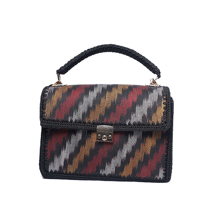 This bag is the result of a decoupage creation with a unique motif that comes from patterned tissue on woven pandanus media. Our innovation in this bag is to use tissue with local wisdom motifs typical of Bangka Belitung, namely Tudung Saji. This bag has a medium size with a zipper. Stock is available and can be ordered in large quantities with a PO system. And also can be costum for the motif.