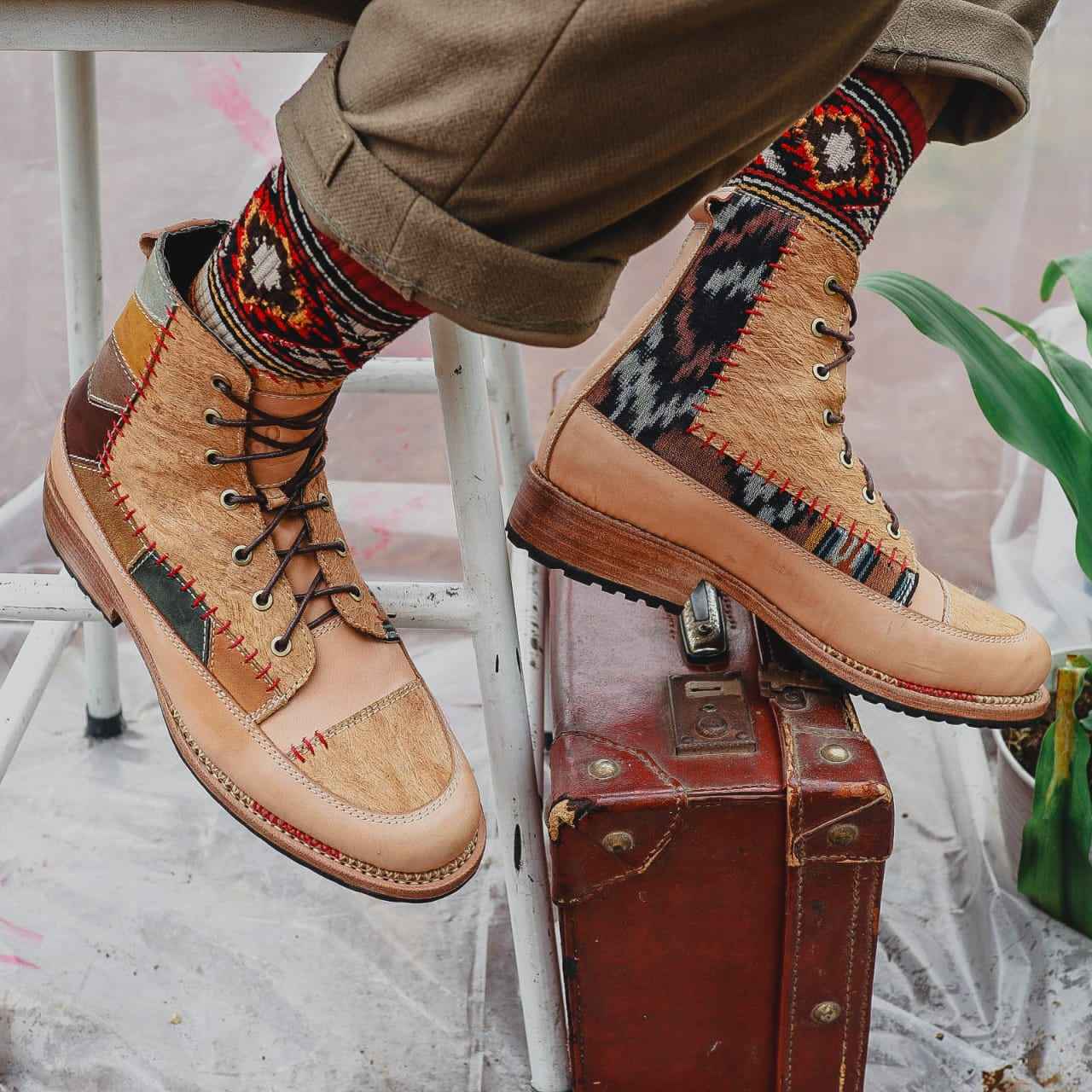 Bhinneka Boots are very unique shoes because they are made of wood fiber or bark, where this material is a clothing material used by Indonesian people in ancient times. In addition, these boots also use typical Indonesian woven fabrics and vegetable leather as the main material.