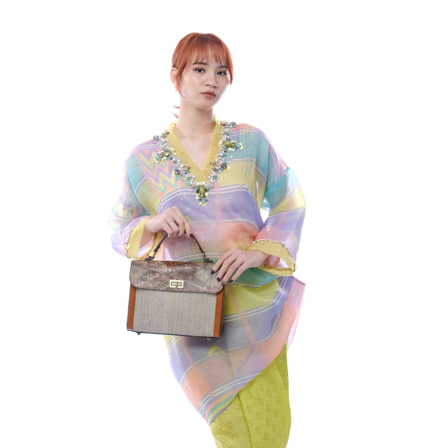 A bag made of woven palm fiber combined with ecoprinted sheep skin. Used for casual & formal. The fiber material is soft, smooth, strong, light & traditionally processed