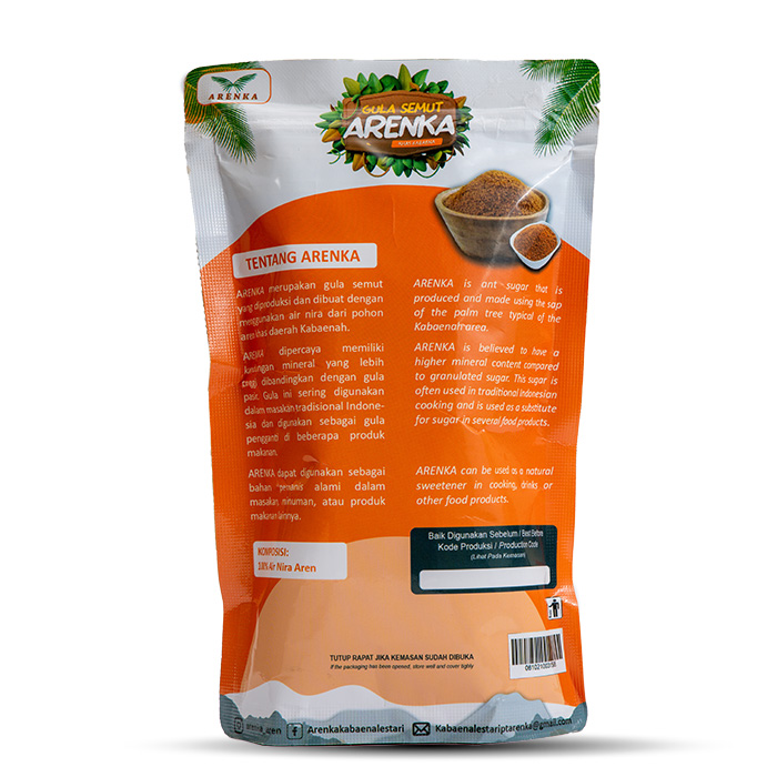 Arenka is powdered palm sugar typical of Kabaena, Southeast Sulawesi Province. Processed product derived from 100% palm sap water, palm sugar, without preservatives, suitable for sweetening food and beverages. Having a rich and unique taste, our powdered palm sugar can enhance the taste of your food and drinks in a healthy and natural way.