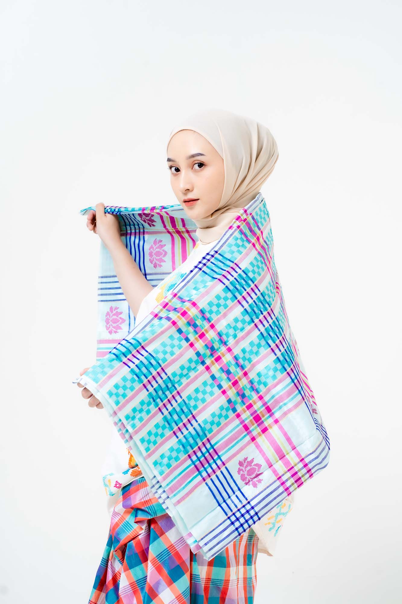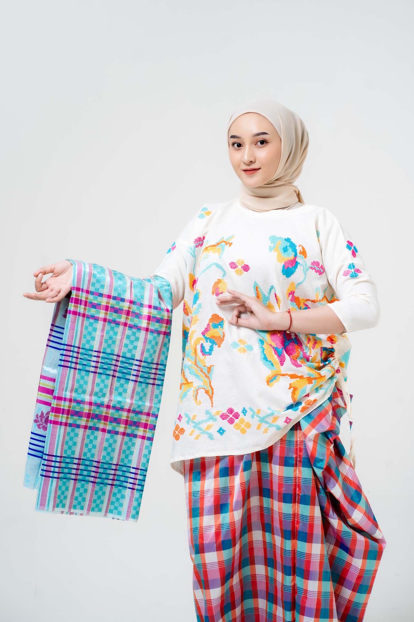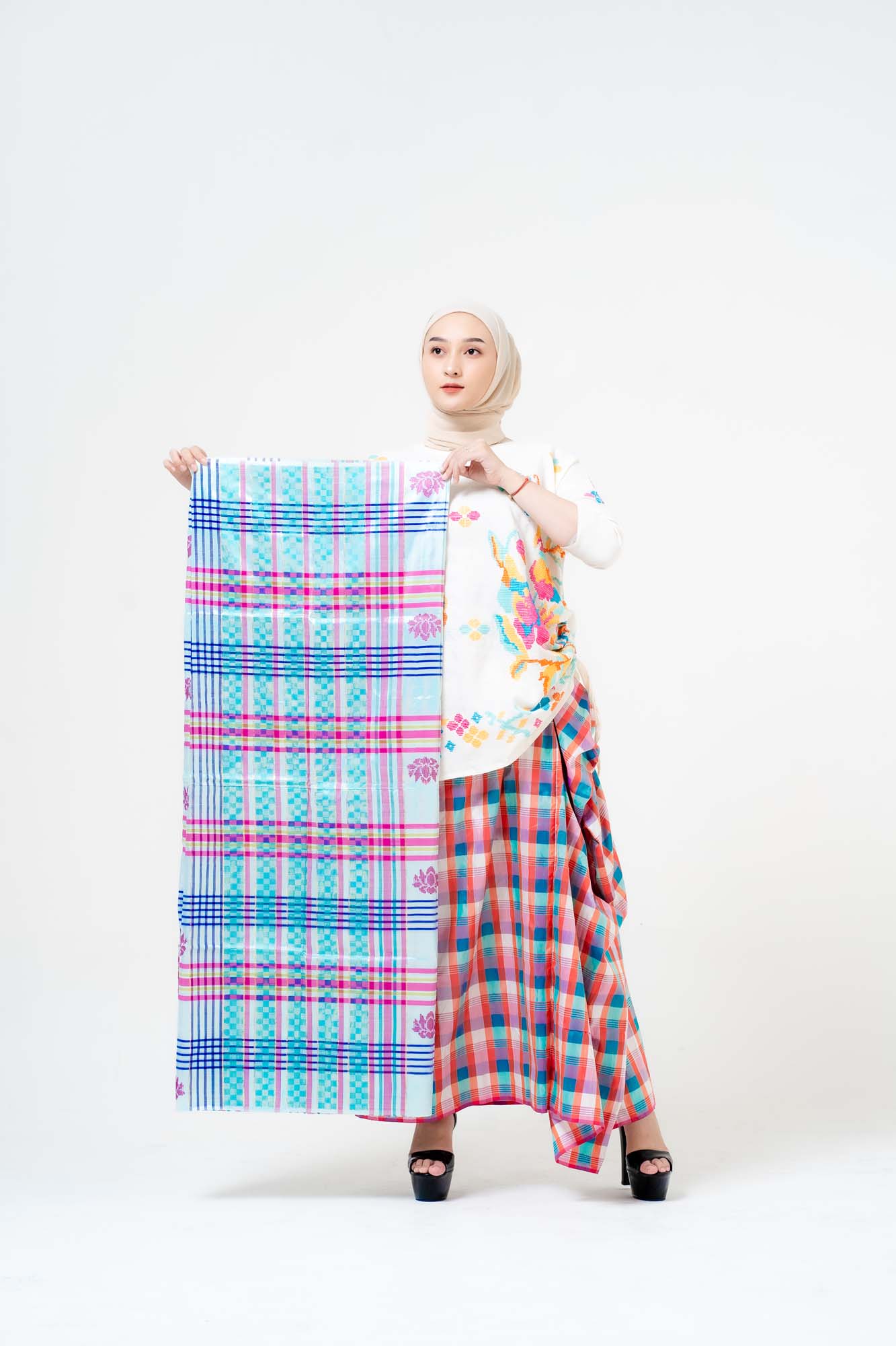 SARUNG SUTERA PADUAN MOTIF LOBANG DAN TERATAI (TANPA TUMPAL)