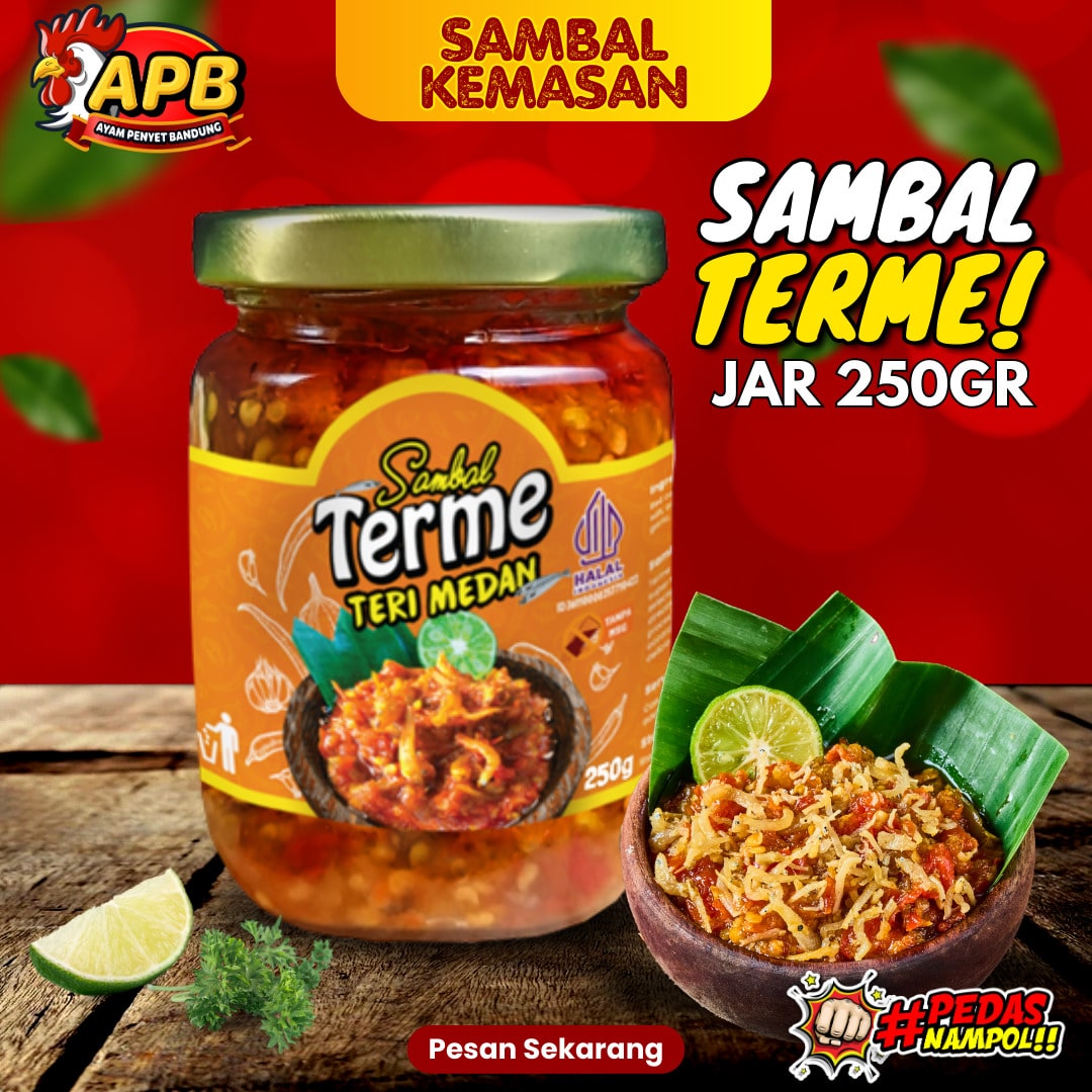 APB mempersembahkan sambal Terme yang nikmat dan bikin nagih, Terbuat dari cabai pilihan, dikombinasikan dengan Teri Medan dan bumbu berkualitas. Diolah dengan standart keamanan pangan, melalui sterilisasi dan pasteurisasi.