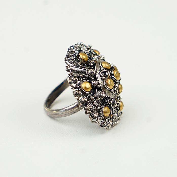 a ring with a combination of gold made by hand made size free zise