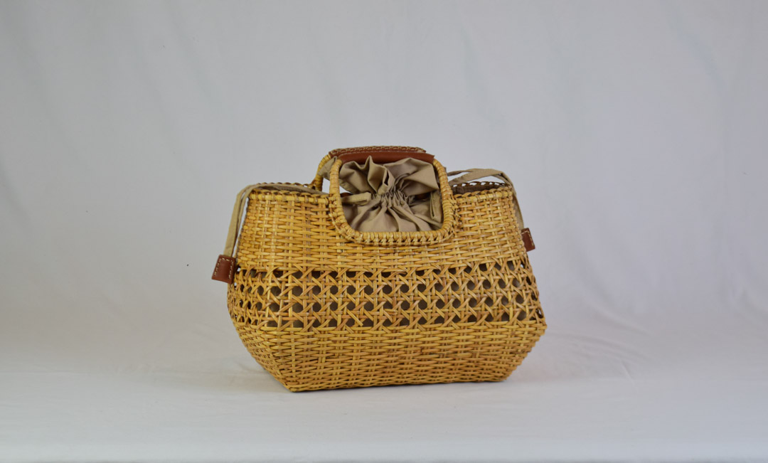 The combination of horizontal woven rattan and motoera into a single design of a large tote bag that is quite light in weight. We present JOVINKA to help the owner carry many important items.