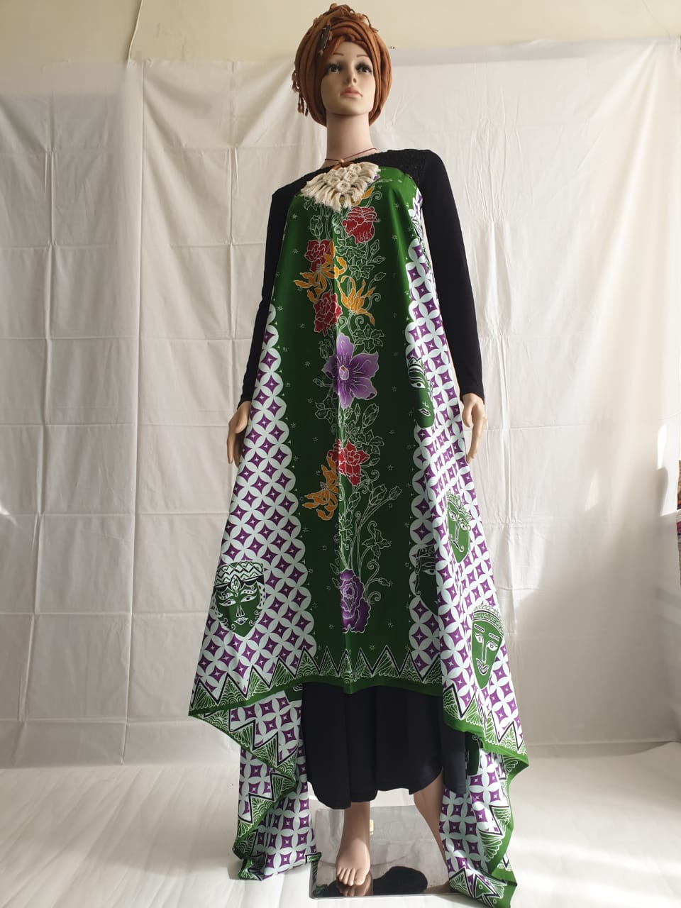 Pattern Meaning: Dewi Kilisuci Batik is inspired by the story of Rama Wijaya Rungga Dewi, the daughter of King Airlangga, who retired to Selomangkleng Cave and left the royal throne to her two younger siblings. The mask motif wearing a crown symbolizes the throne of the Kadiri Kingdom. The kawung motif symbolizes Dewi Kilisuci's wish that all citizens of Kediri be spared from all dangers (purity and longevity).