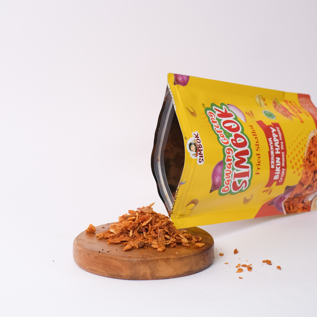 We are UMKM CV Simbok Berkah Mandiri, which produces fried onions with the Simbok brand, which are processed using raw materials from farmers. Simbok Fried Onions are processed from selected Shallots, resulting in crispy, quality and Crispy fried onions. With a shelf life of 1 year and empowering women as workers. Simbok Fried Onions have 5 flavors: Original, Spicy Shrimp Paste, Rebon Shrimp, Medan Anchovy, and Salted Egg. All flavors are made from natural ingredients, no synthetic flavours.