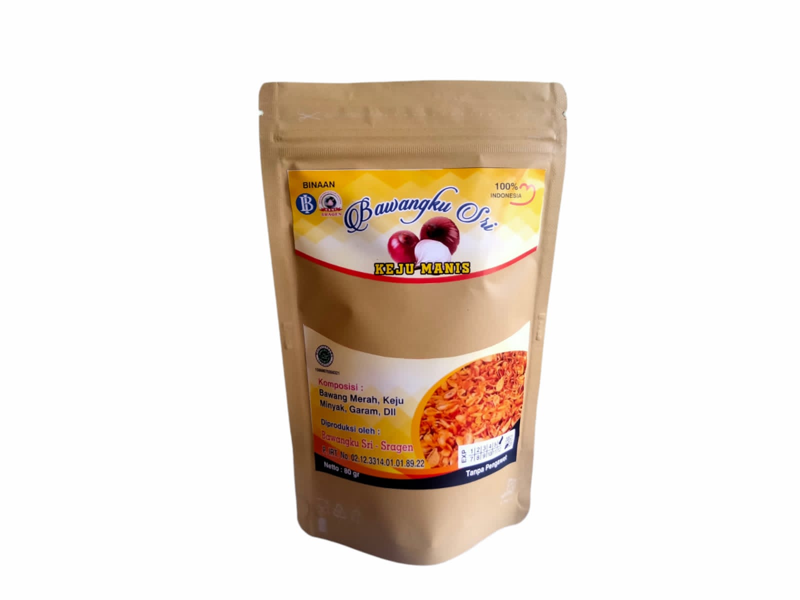 ABMI is located at Dukuhan RT 01/ RW 04, Nglorog, Sragen Regency. ABMI is a forum for shallot producers to encourage Sragen Shallot farming to be more environmentally friendly with cost efficiency and improve product quality. ABMI Sragen cooperates with its members to facilitate the production and processing of shallots from upstream to downstream. Since 2017, the BawangkuSri brand has been developed, which prioritizes the quality of pure fried onions without flour. Processed properly, the aroma of shallots is still strong with a sweet, savory taste for meals and snacks.