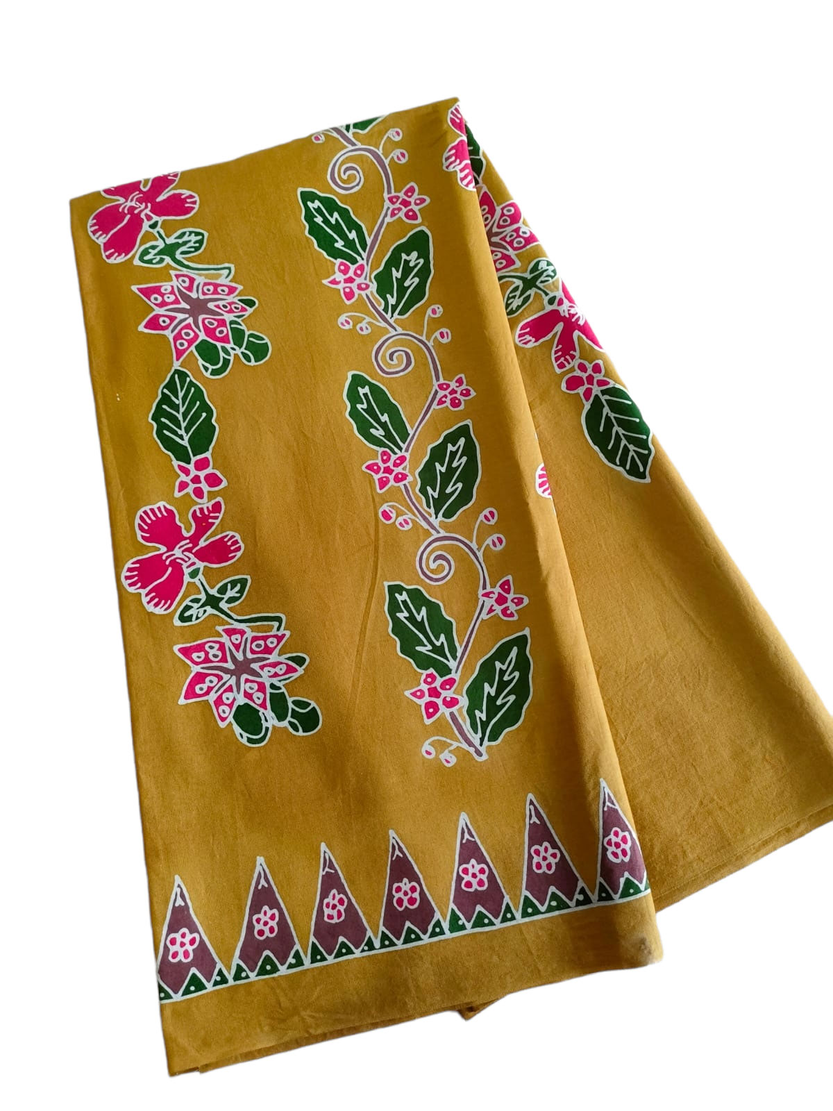Pattern Meaning: Simpor Laki merupakan tumbuhan khas Belitung yang mempunyai karakter berdaun lebar namun tidak mempunyai cabang alias satu rumpun batang. Serta bunga yang besar berwarna kuning kemerahan dan biji merah. Bua Nasik-Nasik adalah buah yang muncul di pucuk ranting secara bergerombol. Bentuknya bulat berukuran kecil. Warnanya yang putih sangat kontras dengan warna daunnya yang bewarna hijau. Buah ini terlihat seperti nasi-nasi banyak terdapat di pedalaman pulau Belitung. Pucuk Rebong adalah tunas muda yang tumbuh dari akar menjadi tuas bulo dan berbentuk meruncing ke atas dikelilingi daun yang berbentuk segitiga. Pucuk rebung sendiri memiliki makna harapan baik, serta junjungan adat melayu yang kental dengan nilai-nilai tradisi di pulau Belitung.