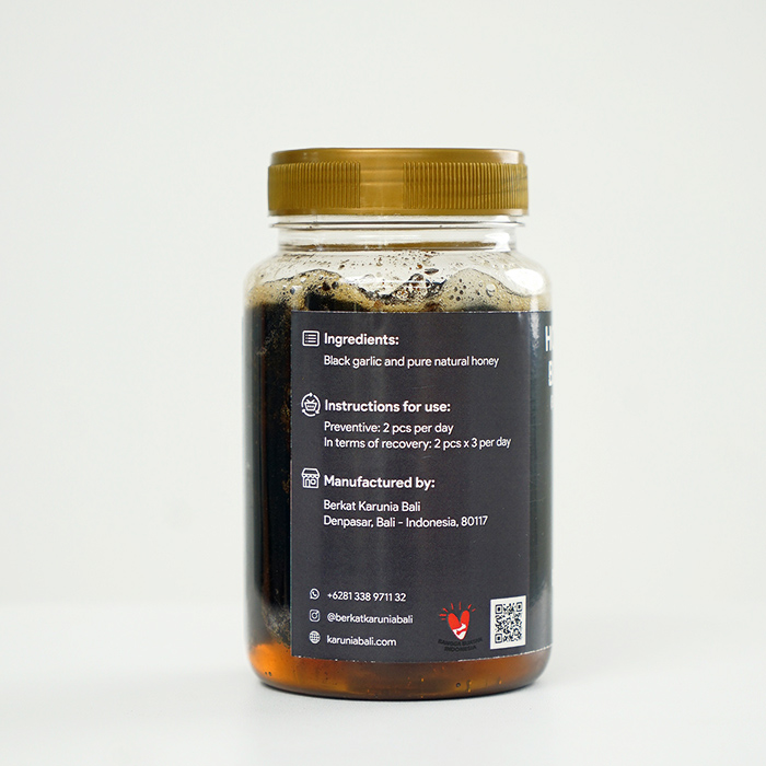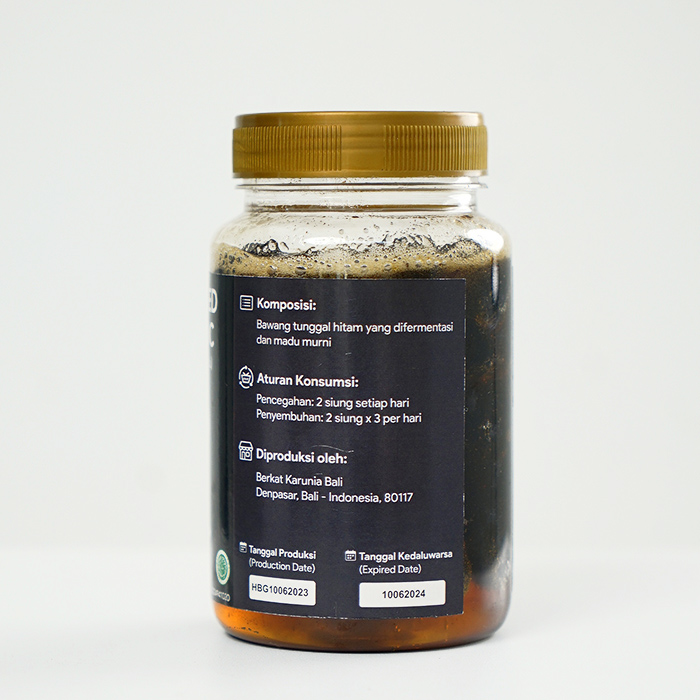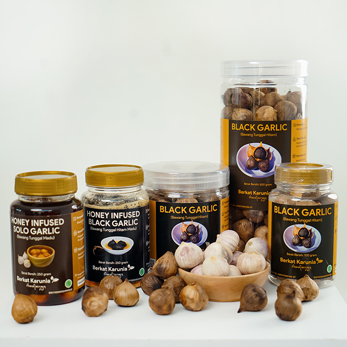 Black Garlic (Bawang Tunggal Hitam) contains high levels of antioxidants and can help overcome various health problems, including: Lowering bad cholesterol levels, Prevent hypertension, Lowering blood sugar levels, Overcoming uric acid, Prevent strokes, Maintain heart health, Overcoming respiratory problems, And there are many others. How to consume: Consume 2 seeds in the morning before breakfast and 2 seeds at night before going to bed Storage Method: Stored at room temperature, avoid direct sunlight