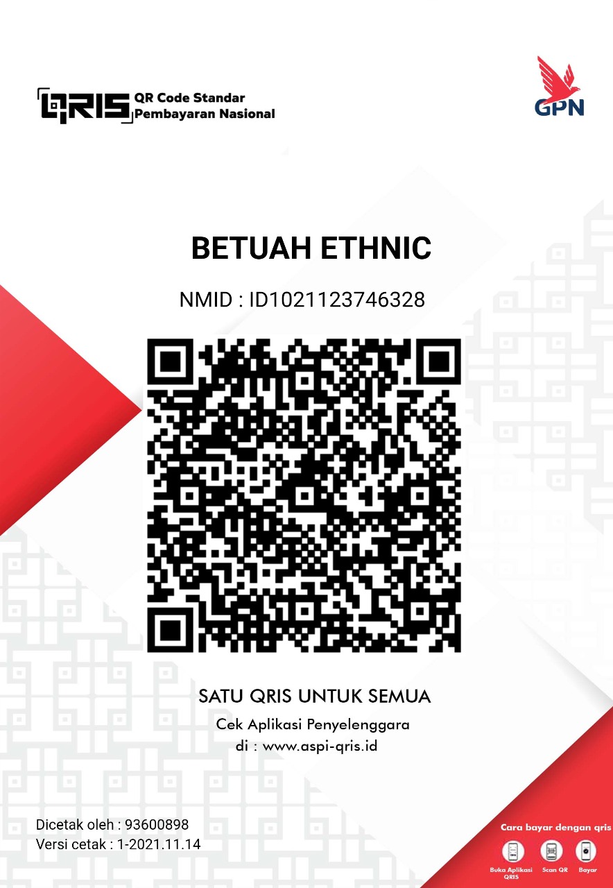 Batik dengan beragam motif menggunakan pewarna alami daun mangga, dibuat dengan teknik batik cap kemudian diberikan warna dari ekstrak daun mangga. Kain ini dikerjakan 100% Alami. Konsep produk millenial mengingat Betuah Etnic mengusung produk alami dan anak muda