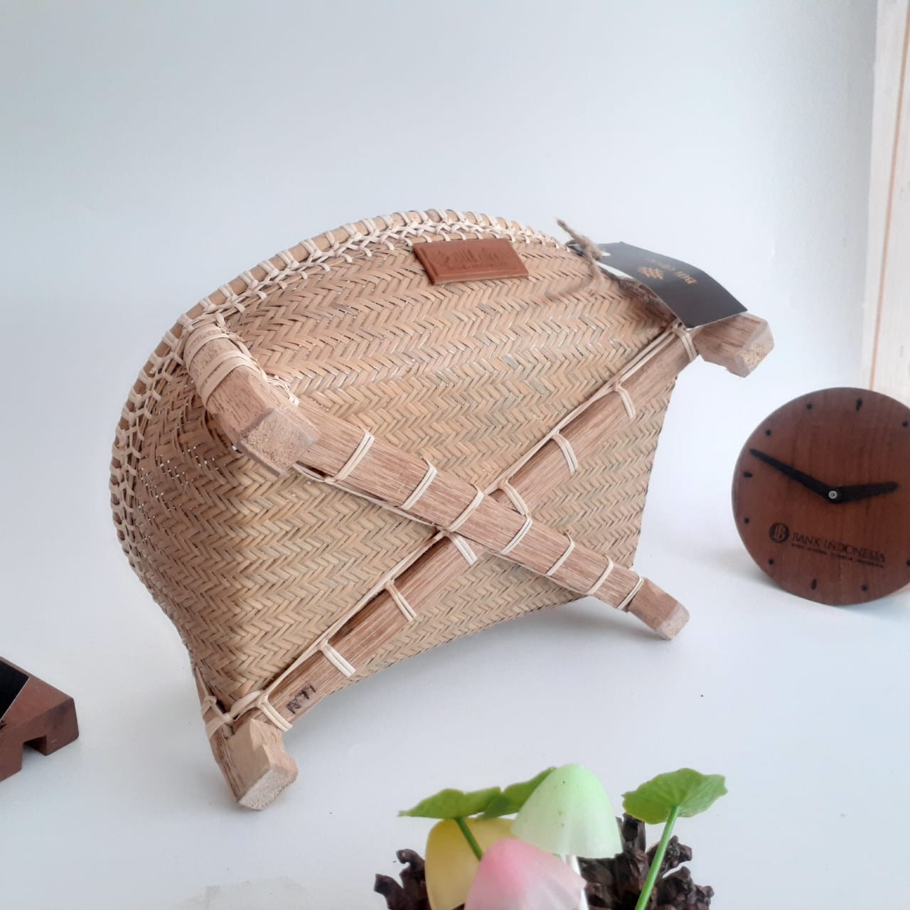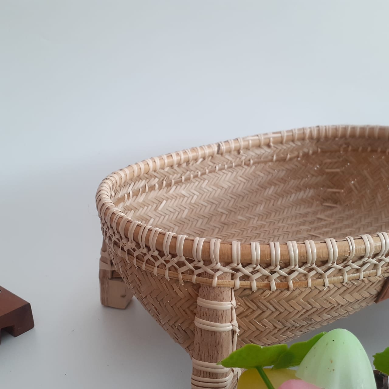 Woven Leather Bili / bemban Which Is Formed Into A Neat Wicker Basket In Finishing, This Basket Is Made With Wooden Legs That Will Strengthen The Product And Has 2 Wood As The Base Under The Basket.