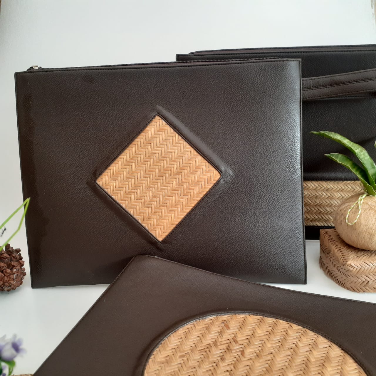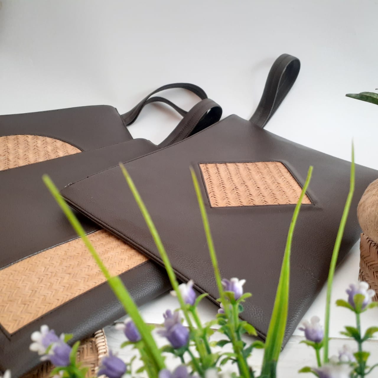 Woven Bili/bemban Leather Sewn With a Combination of Synthetic Leather Using an Industrial Sewing Machine.