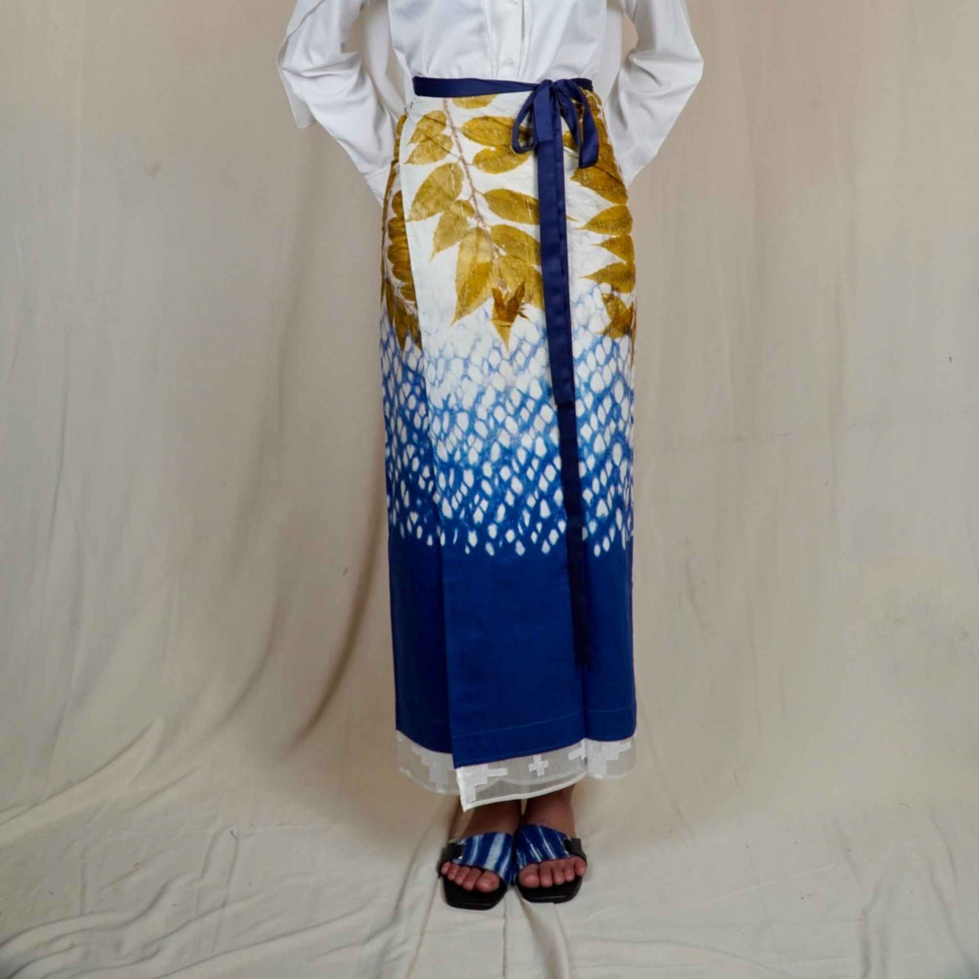 BOOLAO Saroong Shibori on Ecoprint Wrap Skirt