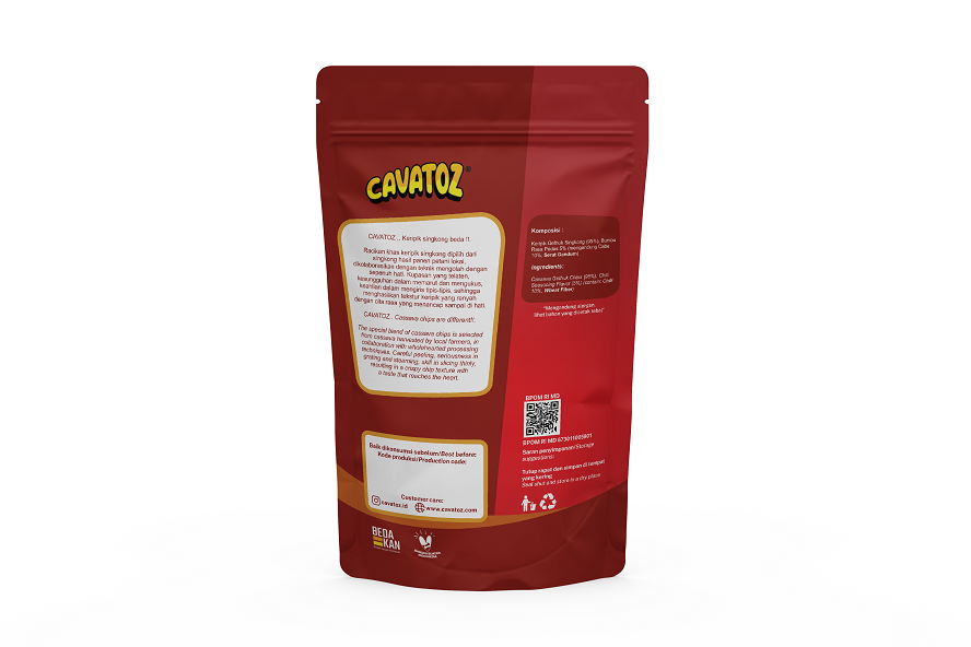 Cavatoz is crispy chips of cassava gethuk that produced at Sawahan RT 01 RW 02 Ngemplak, Boyolali, Central Java. It is made of premium qualified cassava, collaborated with perfect, processing technique, persevering in steaming and shredding, slight slicing so that in produces crispy texture and crunchy. Nowadays Cavatoz has many flavours. The CAVATOZ brand has been released since 2019 with 4 employees and has a simple but meaningful vision: Share Happiness!. Always committed to using local raw materials and local labor as a form of empowering the surrounding community. In addition, enjoying CAVATOZ means that customers participate in sharing happiness.