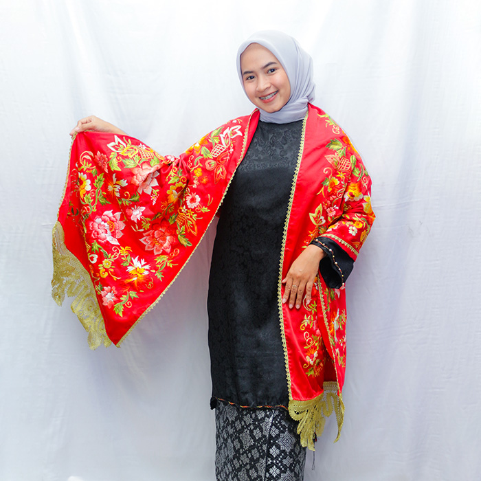 Pattern Meaning: The embroidery technique that gradates colors to create a three-dimensional effect is known as "sulaman gradasi" or "gradated embroidery." This hand embroidery technique involves skillfully blending different shades of threads to achieve a gradual transition of colors, giving the artwork a sense of depth and dimension. The process of creating gradated embroidery is meticulous and time-consuming. The skilled artisans carefully combine and blend the colors of threads as they work on the piece. The embroidery process can take approximately three months or more, depending on the complexity and size of the artwork. It's worth noting that the entire production process, including design, embroidery, and lacework, is carried out manually or "handmade." This emphasizes the craftsmanship and dedication involved in creating each piece of artwork, making it unique and highly valued for its artistic quality and attention to detail. The handmade aspect ensures that each item is crafted with precision and care, contributing to its overall beauty and value.