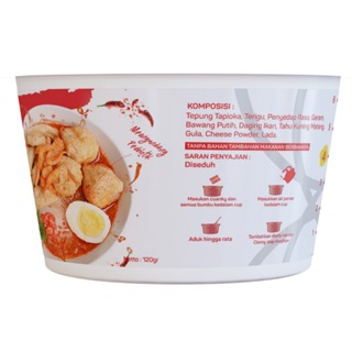 Material Content: 1. Tahu Kering: Empat potong tahu kering yang renyah. 2. Siomay Kering: Empat potong siomay kering yang lezat. 3. Soun/Bihun: Mie tipis yang lembut saat direbus. 4. D’tella Hot: Saus pedas yang memberikan cita rasa ekstra. 5. Bumbu: Campuran bumbu yang memberikan rasa khas. 6. Cabe Kering: Cabe yang kering untuk menambah kepedasan. 7. Krimer Keju dan Minyak Ebi: Krim keju untuk rasa creamy dan minyak ebi yang aromatik.