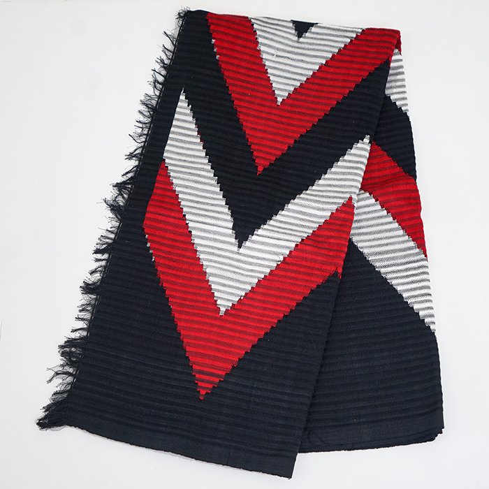 Pattern Meaning: The Zig Zag Tridatu motif is a 3-colour symbol of the three life forces: red is birth, black is life, and white is death or returning to its origins.