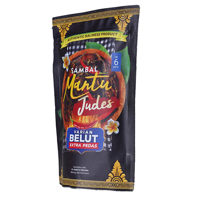 Sambal Mantu Varian Belut Judes Pouch memiliki level pedas ESTRA PEDAS dengan campuran Belut Crispy di dalamnya. Diproduksi secara modern dengan menggunakan bahan-bahan berkualitas dan resep tradisional khas Bali. Dikemas dengan menggunakan kemasan saset. 1 pouch isi 6 saset. Cocok digunakan sebagai salah satu oleh-oleh khas Bali, bisa juga digunakan pada saat traveling, ibadah haji, perjalanan dinas dan lain-lain.