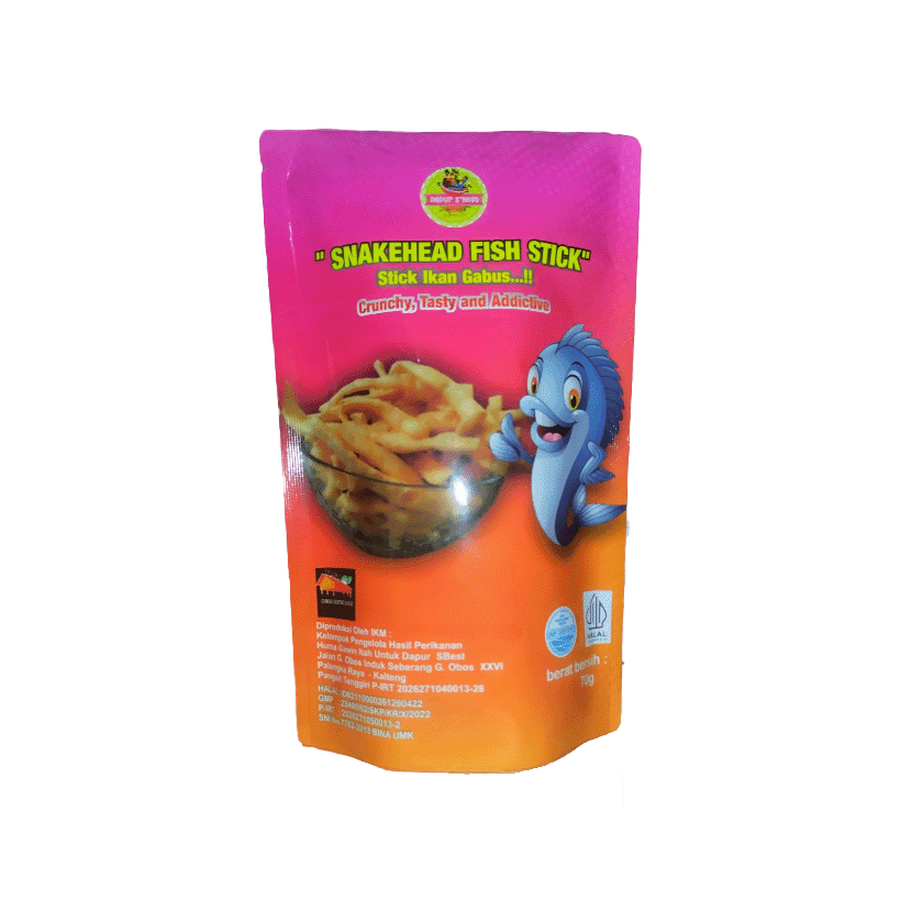 Snakehead fish stick or also called Haruan fish. Made from tapioca flour and snakehead fish. Snakehead fish contains a lot of albumin which is good for healing wounds. This snakehead fish snack is very suitable for children to enjoy while relaxing. The mixture of lime leaves makes this snack have a unique taste.