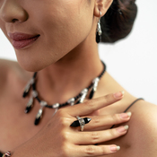 This design is inspired by ancient objects, namely Nakara, which is wrapped in a variety of Balinese decorations / carvings and sprinkles of 18k gold and combined with Oxyr gems, it looks very attractive.