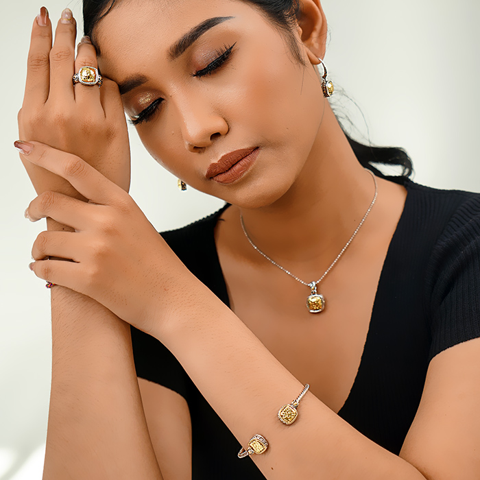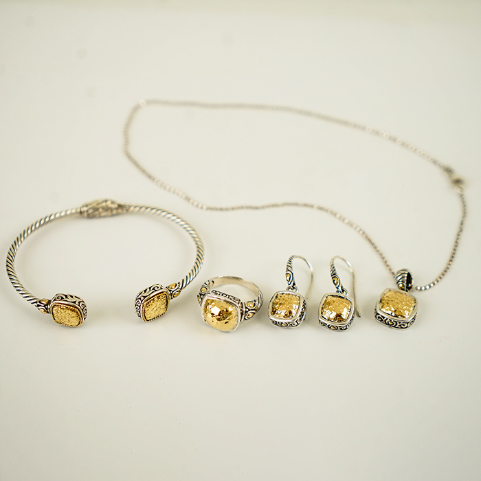 This Hammer design is made in a square shape which is inspired by the round Kempur Gambelan / Balinese Gong. Which is combined with gold rope ties and 18k gold plong accent so that they have harmonious values. These designs are made in the form of: bracelets, earrings, rings and pendant.
