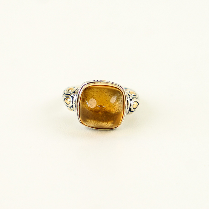 Silver Pillow Ring 925 with Gold Gold bezel, Gold Plong 18k and used Citrine Pillow Stones