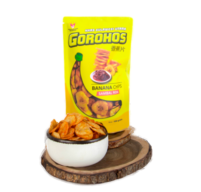Gorohos are chips from Goroho Bananas which are a type of banana that grows a lot in Eastern Indonesia, especially in North Sulawesi. Goroho bananas which in Latin are known as Musa Acuminafe sp, Goroho bananas have a taste like potatoes. Goroho bananas are unique, because to consume them they must be processed first by burning, boiling or frying. In North Sulawesi, Gorohoss Bananas are often consumed with the typical Manado Roa sauce.