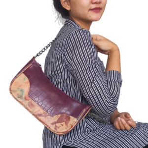 This bag is made of genuine cow leather which is embossed with crocodile motifs combined with cowhide which is innovated with a coloring technique painted in water, making a unique blend and different from other leather bags. Its simple design can be worn with 2 types of looks either as a shoulder bag or a crossbody bag. The interior is made of soft and thick suede fabric equipped with a versatile zipper pocket. dimention : 24 x 18 x 8 cm