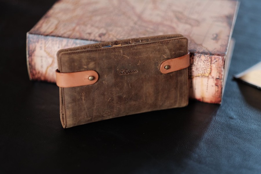 The smart long wallet "Bermuda" uses 100% genuine cow leather, Ykk metal zippers and Cordurra woven pattern lining. It holds 12 card slots, 1 banknote compartment, 1 cell phone, 1 coin pocket, 1 pen and 1 passport with a Vegtan buffalo strap. You can get all this with a 1-year warranty.
