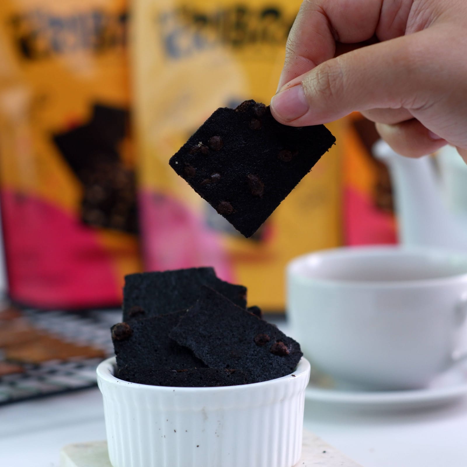 Brownies Chips Snack produced by Eco Cookies from 2018 in Surabaya, East. Java Made from premium chocolate it has a thin and crunchy texture. There are four choices of toppings with a shelf life of one year, Miss Kribro presents a new way of eating brownies. The right choice for snacking wherever and whenever.