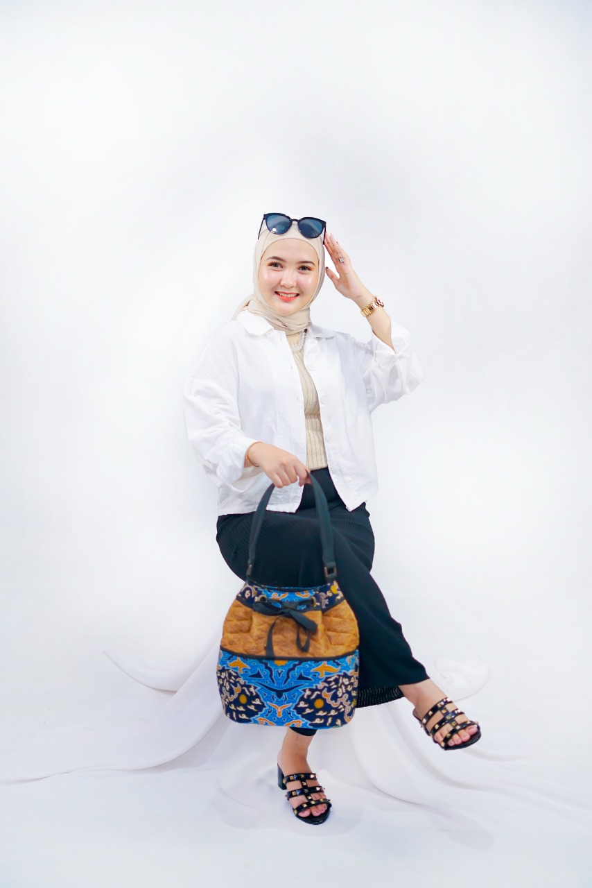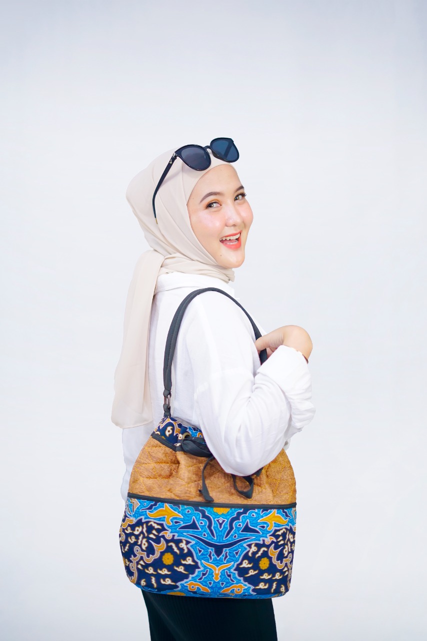 Tas Santai Kulit Kayu Kombinasi Batik Besurek
