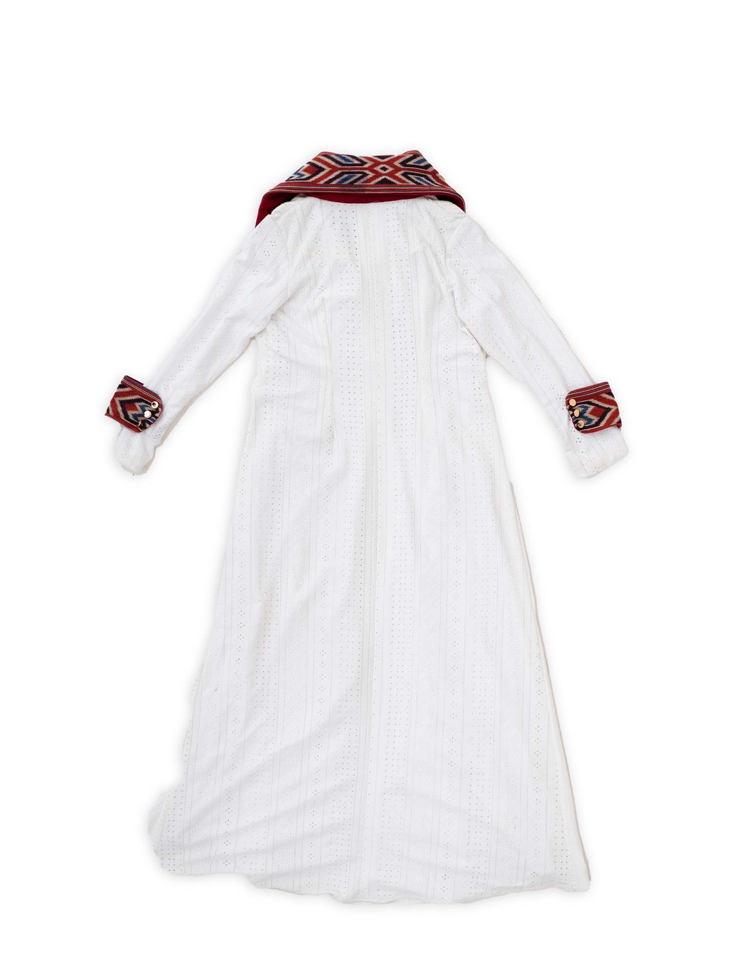 Gaun Putih Aplikasi Tenun Ikat Sekomandi Motif Ulukarua Barinni
