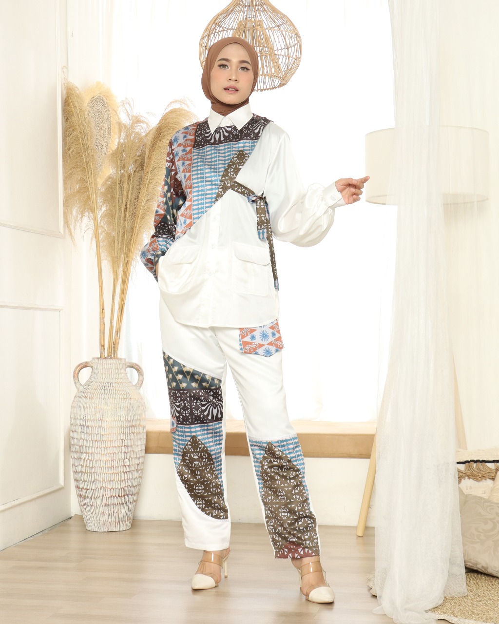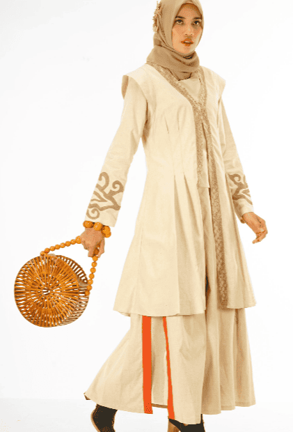 The hallmark of this brand is using typical Indonesian fabrics such as batik and weaving or technique that can characterize Indonesia by using the technique lasercut. The majority of the selection of materials using natural fiber materials with earth tone color.