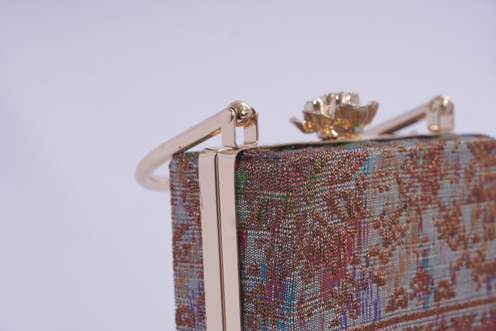 Crafted from a sturdy frame wrapped in traditional Palembang songket fabric, this piece is complemented by a 105cm long chain. Elevate your style with this unique blend of durability and elegance! Crafted from a sturdy frame wrapped in traditional Palembang songket fabric, this piece is complemented by a 105cm long chain. Elevate your style with this unique blend of durability and elegance!