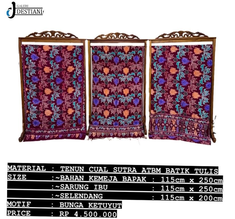 Destiani Gallery was established in 2015, producing ATBM woven fabrics with cual motifs which are innovative developments from ancient cual motifs, an ancestral heritage typical of Bangka Belitung. Produced manually, it produces high quality fabrics and has high artistic value.