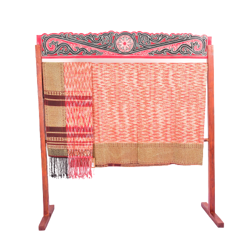 Pattern Meaning: The motif on this ulos means the characteristic of the Bataknese who are firm in a stance and always pass down to their descendants. The trophy motif is combined with the Ulos Tapak Catur motif which comes from Batak Simalungun meaning as a cover for the body, which means to stay healthy physically and mentally.