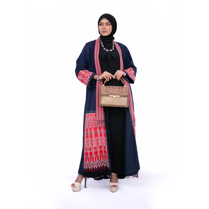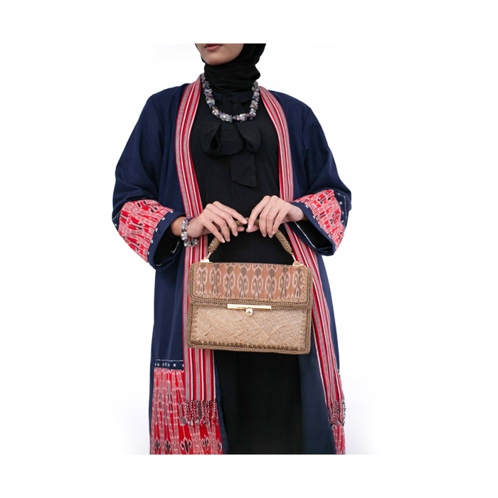 Material Type: Benang rajut nilon merek Peniti, kain tenun ikat Dayak Sintang dan juga anyaman bemban Kapuas Hulu.