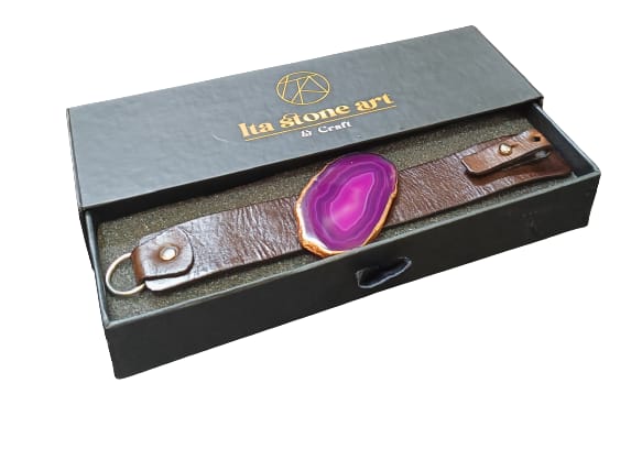 A blend of thinly cut agate and genuine cowhide. Agate stone is believed to provide balance to the body and get rid of negative energy.