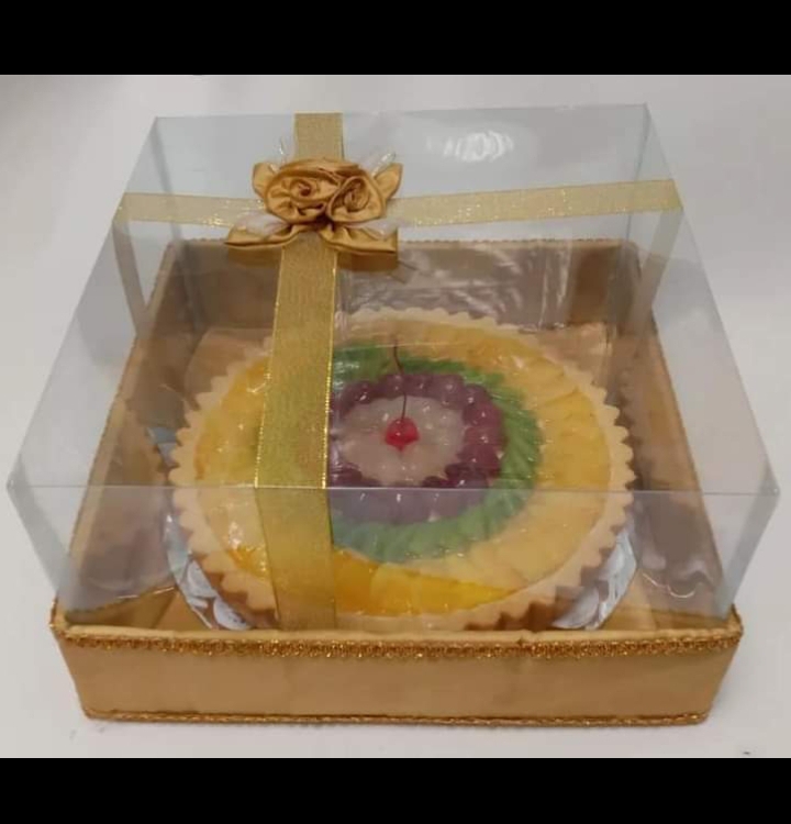 Material Content: Tepung terigu, mentega, gula, vanili, air, susu, tepung maizena, telur, jelly, aneka buah-buahan