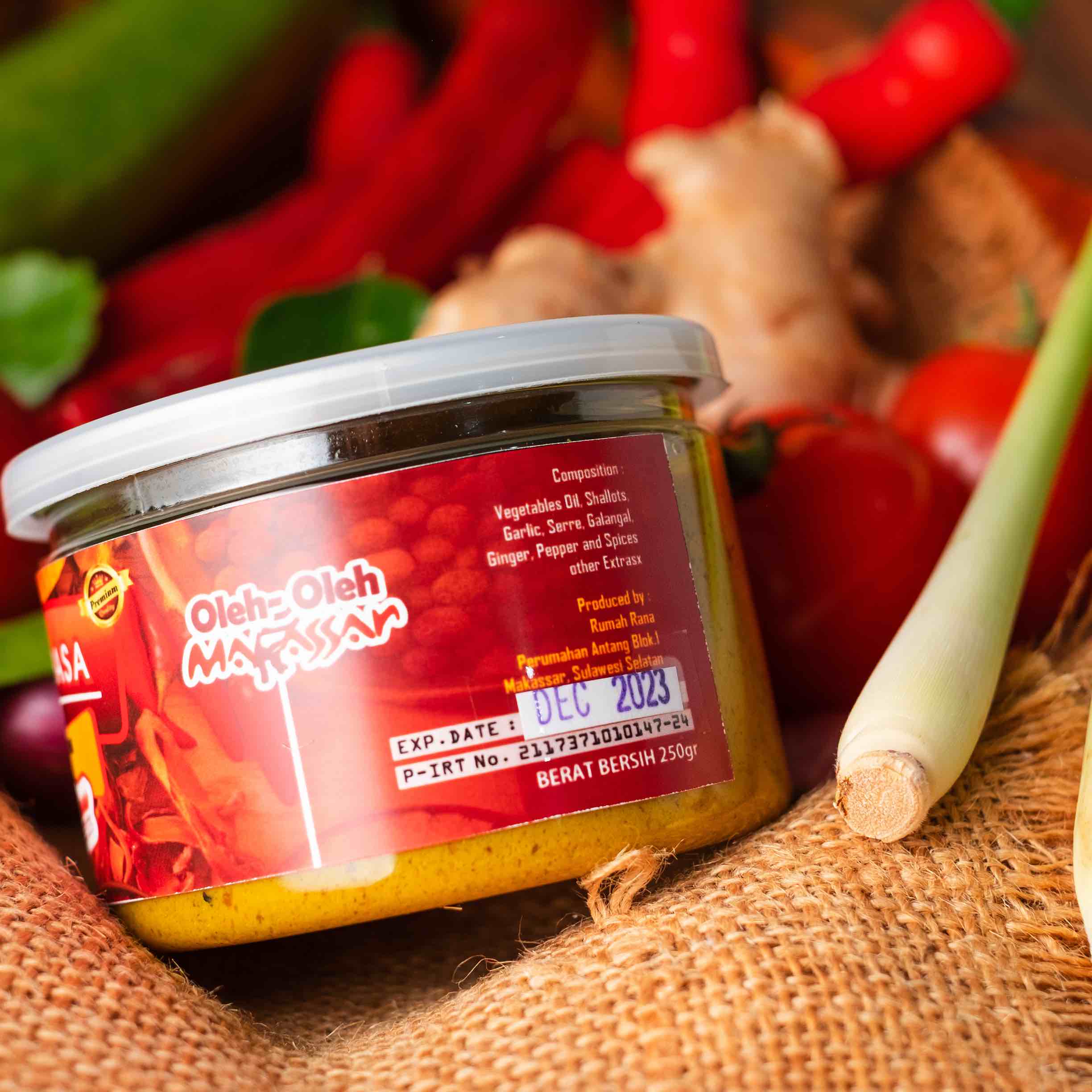 Instant spices are processed from fresh raw materials directly from the farmers. The product is hygienically processed with a typical authentic taste of local wisdom without containing MSG. seasonings are advised to be stored in a freezer with a temperature of 2°c or stored away from Instant seasoning description direct sunlight. Storage time of product for a 12-month with freezer temperature and a six month with no refrigeration.
