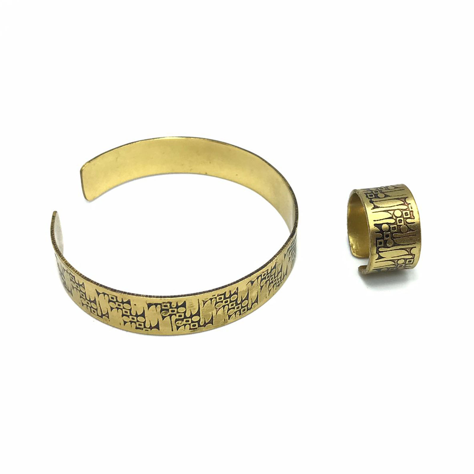 Dimension: Gelang diameter 5,5 cm lebar 1 cm, Cincin diameter 2 cm lebar 1 cm