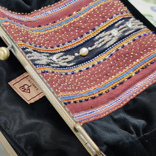 It is an Artisan creation that is handmade production and presented individually and is very limited. It contains the beauty of the Tanimbar Woven combined with Sea Pearls from the Dobo Islands, Maluku, studded with crystals and sequins, to become a special Handbag for a special occasion with the Special Persona such you are.