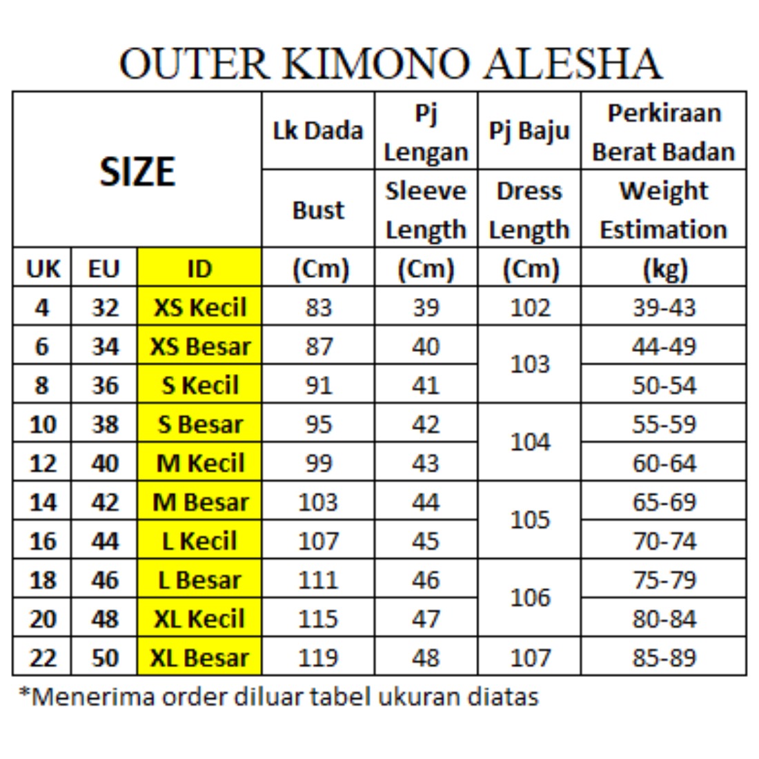 Size: M Besar-42 : Lk Dada 103 cm = 65-69 Kg