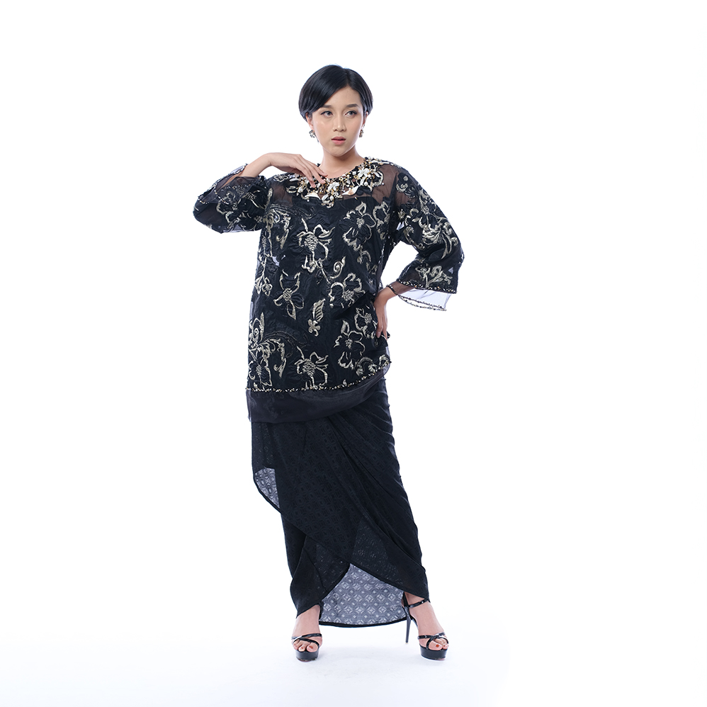 Kebaya Kutubaru Pendek Paris Cirebon Wayang Hitam Gold