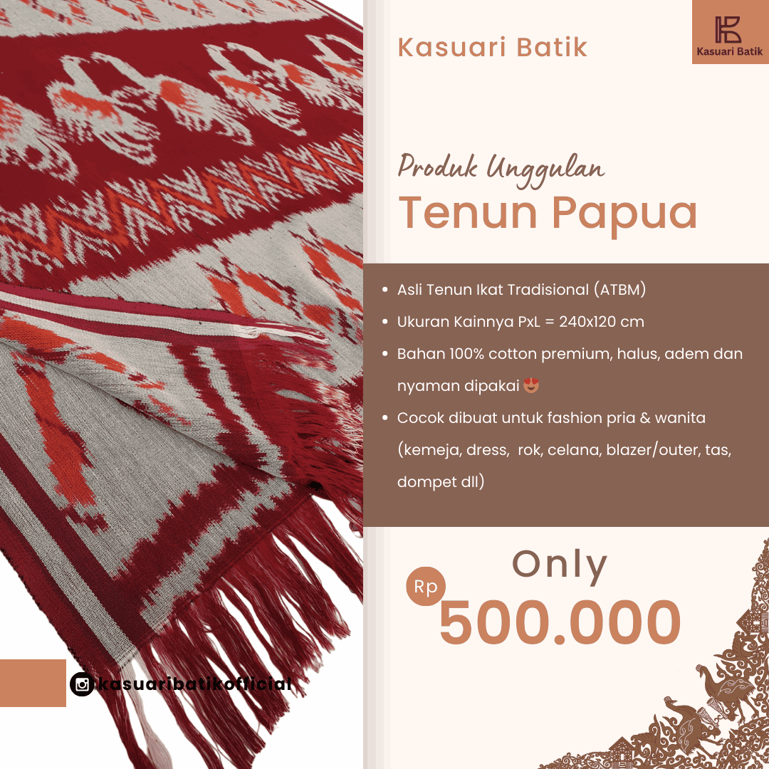 Founded in 2006 in Manokwari - West Papua, Kasuari Batik is one of the leading "Papua Batik & Tenun" fashion design houses and a symbol of exclusive ready-to-wear brand. Our design are produced carefully in traditional way by the hand of our experienced artisans. All of our products crafted with great attention to detail. Born from an inspiration that is coming from the culture, tradition, diversity of flora and fauna from Eastern Indonesia, Papua & West Papua. It's authentic, artsy and unique.