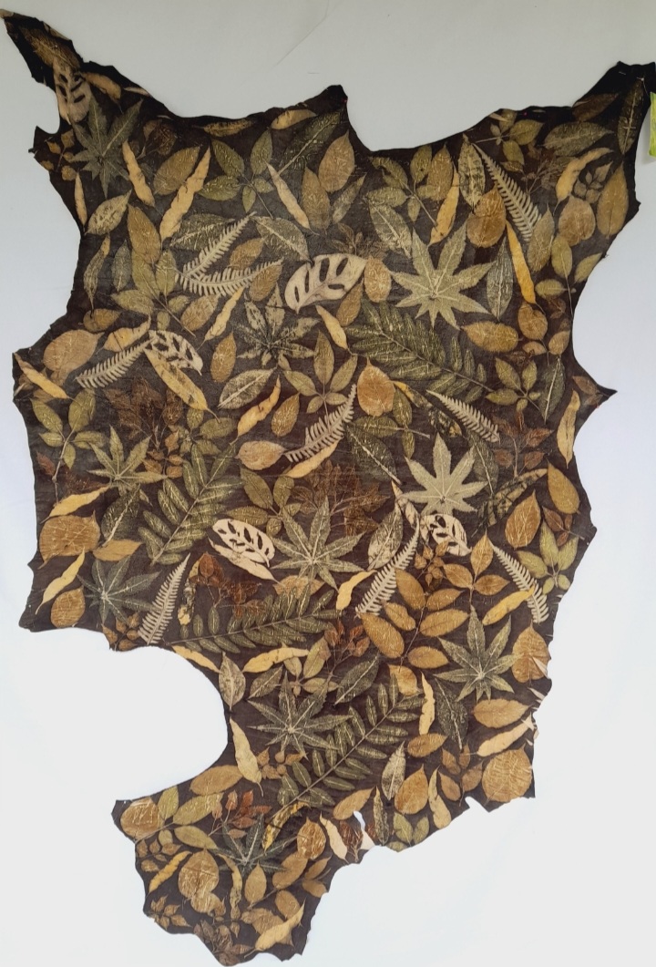Ecoprint Sheet Leather Made from Cow, Goat and Sheep skins. Ecoprint motifs are leaf and flower motifs. High Natural Dyes, Secang, Jolawe, and Manjakani. This leather is the basic material for bags, shoes, suitcases and other handicrafts The price of 100,000 is the price per foot (30cmX30cm) Each sheet is always a different pattern, color and size of the feet. The size of each sheet between 6 - 12 feet.