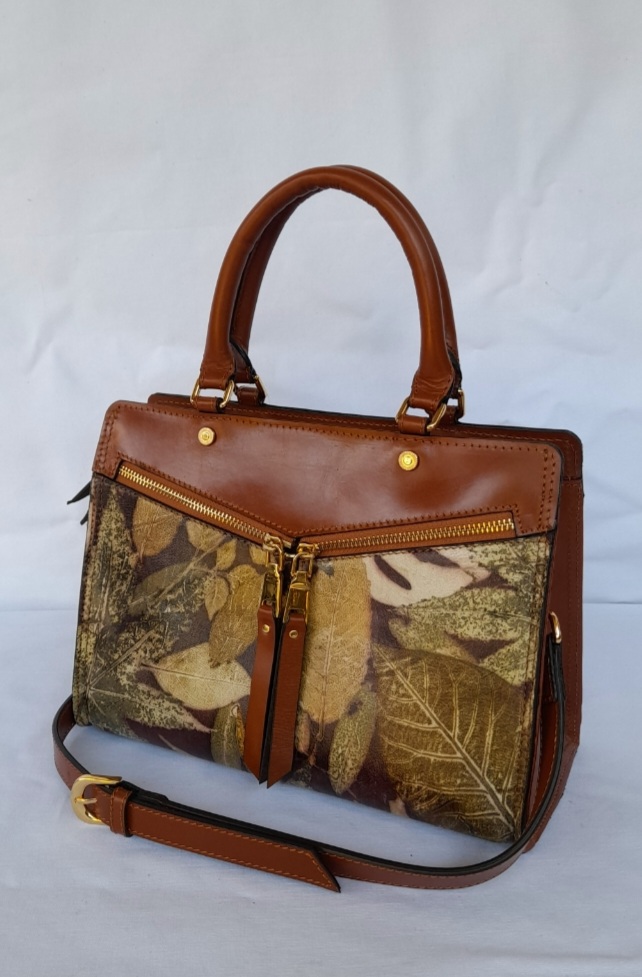 Best Quality Women's Bag and Limited Edition. Each product has a different motif and uses natural dyes. Made from Ecoprint Sheepskin and Plain Cow Leather. There are 2 choices of Plain Leather, namely Dark Green and Brown. Size 28X13X21cm. Shoulder strap, length can be adjusted. Using high quality materials, not easy to fade, durable, waterproof and easy to clean. This Ecoprint Women's Bag gives Beauty when the Bag is used.